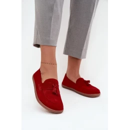 Kožené semišové mokasiny typu barefoot Zazoo 322 červené
