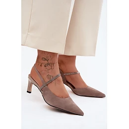 Dámské sandály z přírodního semiše jsou elegantní volbou na výjimečné příležitosti. Klasický střih v kombinaci s špičatými, zakrytými nosky dodává celku štíhlý a ženský charakter. Úzký podpatek ve tvaru sloupu zajišťuje stabilitu a pohodlí při chůzi a zároveň jemně zvýrazňuje siluetu. Vepředu je ozdobný pásek, který upoutá pozornost a dodává celku elegantní akcent. Měkká kožená vložka zvyšuje pohodlí při nošení, takže sandály jsou ideální na svatby, večírky nebo jiné oslavy, kdy je důležitý styl a pohodlí. Při výběru velikosti se řiďte tabulkou velikostí.