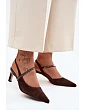 Dámské sandály z přírodního semiše jsou elegantní volbou na výjimečné příležitosti. Klasický střih v kombinaci s špičatými, zakrytými nosky dodává celku štíhlý a ženský charakter. Úzký podpatek ve tvaru sloupu zajišťuje stabilitu a pohodlí při chůzi a zároveň jemně zvýrazňuje siluetu. Vepředu je ozdobný pásek, který upoutá pozornost a dodává celku elegantní akcent. Měkká kožená vložka zvyšuje pohodlí při nošení, takže sandály jsou ideální na svatby, večírky nebo jiné oslavy, kdy je důležitý styl a pohodlí. Při výběru velikosti se řiďte tabulkou velikostí.