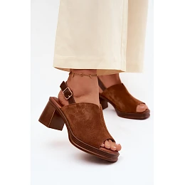 Kožené semišové sandály na podpatku Vinceza 39995 Camel
