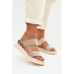 Kožené semišové sandály s ozdobou D&A model 22028018 Béžové - S.Barski