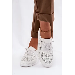 Kožené síťované dámské polobotky LR61-7083 Bílé
