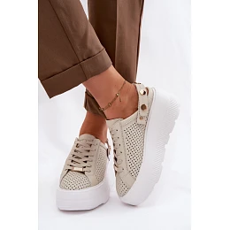 Kožené síťované dámské tenisky na platformě s páskem na podpatku model 22100279 béžové - D&A