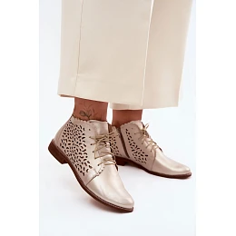 Kožené síťované kotníkové boty na nízkém podpatku Zazoo 4078 Zlaté