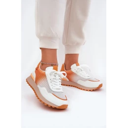 Skórzane Buty Sportowe Z Siateczką Damskie Vinceza 66775 Pomarańczowe
