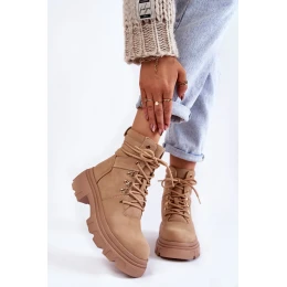 Kožené teplé šněrovací boty Béžové model 21603028 - EVENTO