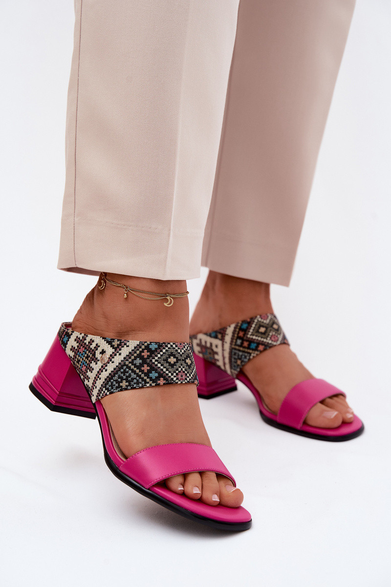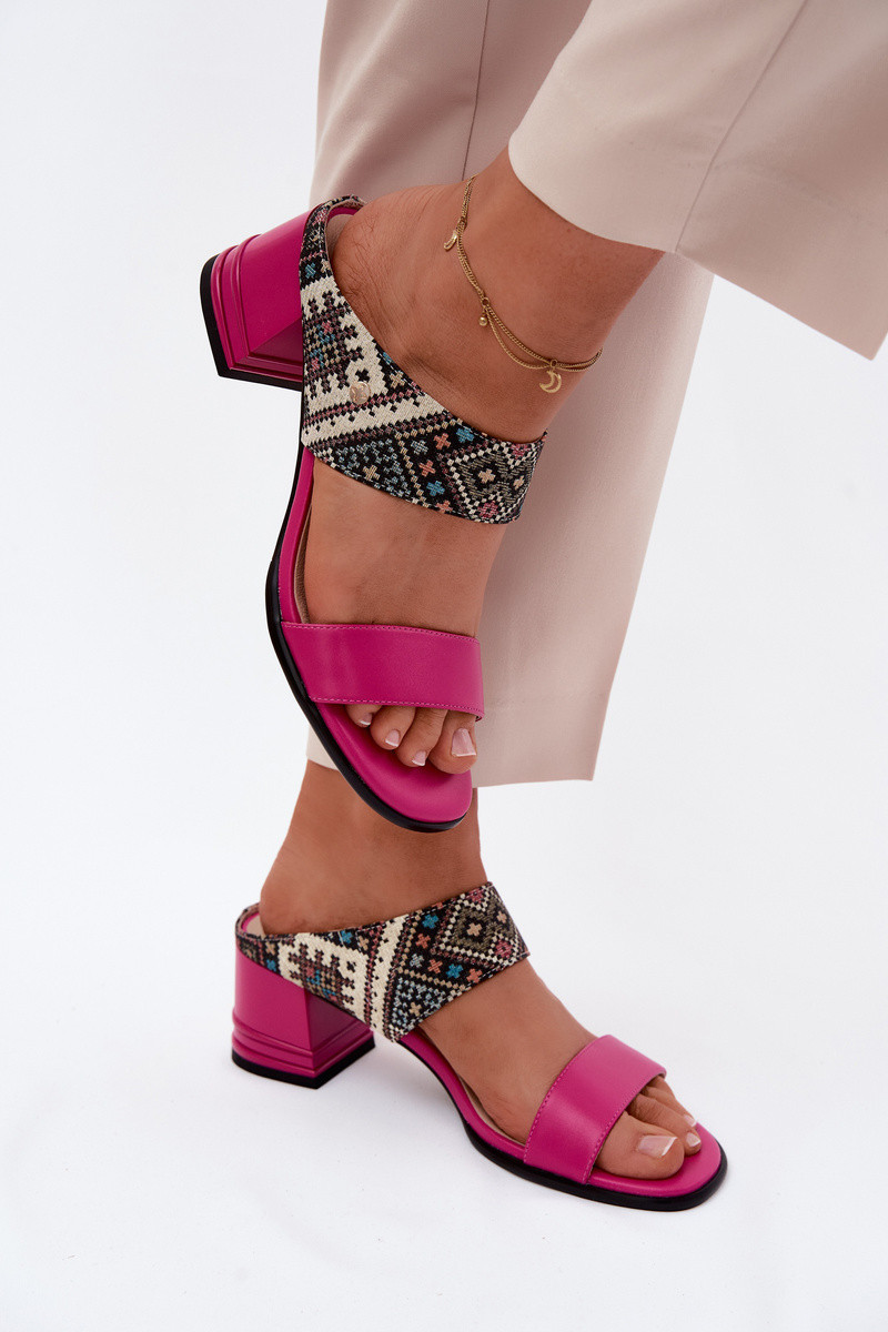 Kožené vzorované dámské sandály na podpatku Maciejka K7522-15 Fuksja