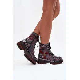 Skórzane Botki Workery Damskie Maciejka 07072-23 Bordowe