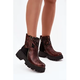 Kožené zateplené kotníkové boty na platformě a plochém podpatku model 21725100 hnědé - Maciejka