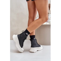 Kožené zateplené tenisky na pevnej platforme Big Star Black