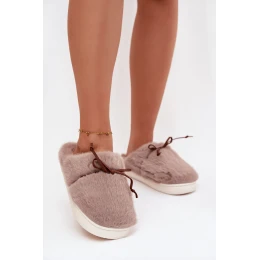 Kožešinové pantofle s mašlí khaki model 21772510 - Boto