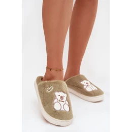 Kožešinové pantofle s medvídkem zelené model 21772566 - Boto