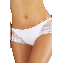 Pohodlné šortky, ktorých boky zdobí krásna kvetinová čipka. Hladká predná strana s malou saténovou mašľou.