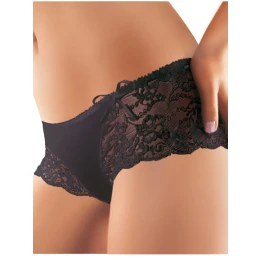 Pohodlné šortky, ktorých boky zdobí krásna kvetinová čipka. Hladká predná strana s malou saténovou mašľou.
