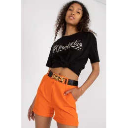 Dámske šortky s elastickým pásom, vrecká na zips. Šortky s ozdobným pásikom. Skvele sa hodí pre mnoho štýlov.