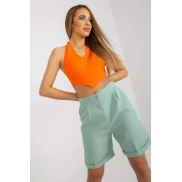 Šortky s vyšším pásom a zapínaním na zips a gombík. Nohavice sú dole vyhrnuté a na bokoch sú vrecká. Skvele sa hodí k mnohým outfitom.