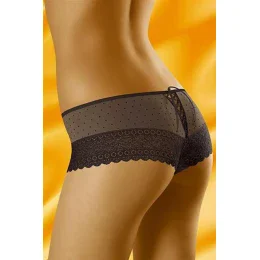 Krásne šortky posypané drobným hráškom. S líniou stehien zabalenou do krásnej čipky. Sexi šnurovanie na chrbte. Celé mierne priehľadné.