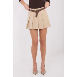 Moderní a pohodlné sukně-šortky s ležérním charakterem, ideální na každodenní nošení i do práce. Vyrobené z směsi viskózy, nylonu a elastanu, jsou měkké, prodyšné a zároveň elastické, co zaručuje pohodlí po celý den. Hladký vzor dominuje, co činí model univerzálním a snadno kombinovatelným. Na přední straně je vsazena plisovaná vložka sukně, která dodává celku jedinečný ženský vzhled a zachovává zároveň funkčnost šortek. Model má vysoký pas, který krásně zdůrazňuje pas. Široké nohavice dodávají lehkost a volnost pohybu. Na zadní straně je vsazena elastická guma, která zajišťuje ideální přizpůsobení, a v pase je zapínací pásek, který dále zdůrazňuje pas. Sukně-šortky nemají kapsy a jsou zcela bez klasického zapínání, díky čemuž se snadno a pohodlně oblékají.