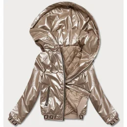 Krátka béžová dámska bunda s kapucňou (B8077-101)