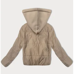Krátká béžová dámská bunda s kapucí model 21061417 - J.STYLE