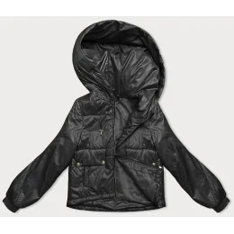 Krátka čierna dámska bunda s kapucňou (B8216-1)