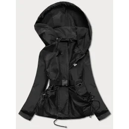 Krátka čierna dámska bunda s opaskom (AG3-03)