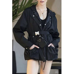 Bunda má podšívku, dvě kapsy a zapíná se zipem a panelem s patentkami. Model má kapuci, kterou není možné odepnout. Bunda má vzadu v pase stahující gumu. Model má délku k bokům.