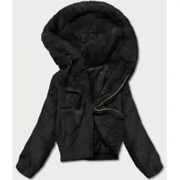 Krátka čierna dámska kožušinová bunda (R8050-1)