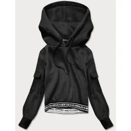 Pridanie recenzie k Krátka čierna dámska tepláková mikina so sťahovacími lemami (26030)