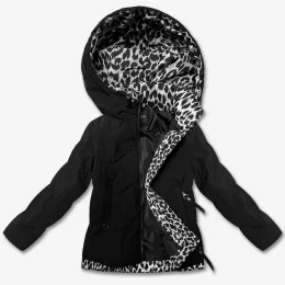 Krátká černá dámská volná bunda s panteřím motivem Miss model 21032325 - Miss TiTi