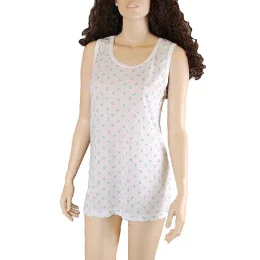 Model je krátký, má široká ramínka a je vyrobený ze vzorované látky.