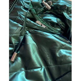 Krátká lesklá dámská bunda v lahvově zelené barvě model 16151333 - MHM