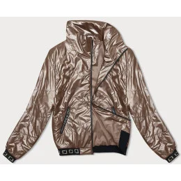 Krátka lesklá dámska vo farbe cappuccino so stojačikom (5M3195)