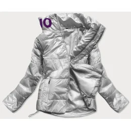 Krátka strieborná prešívaná dámska bunda so stojačikom (B9567)