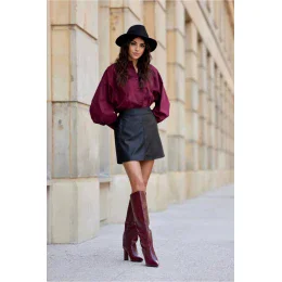 Sukně Jackie je vyrobena z materiálu připomínajícího kůži, který je ideální pro podzimní a zimní sezónu. Sukně je vyrobena v trapézovém tvaru, který sluší každé postavě. Zesílený pas krásně zvýrazňuje pas, zatímco mini délka odhaluje nohy. V zadní části sukně je všitá gumička, která zajišťuje dokonalé padnutí a zaručuje pohodlí. Další předností sukně jsou kapsy na bocích. Sukně je podšitá. Sukně Jackie bude vypadat skvěle s mohutným oversized svetrem a robustními šněrovacími trapery, stejně jako v elegantnější verzi s košilí a botami na jehlovém podpatku. Velká kabelka a hřejivá šála stylově doplní celý vzhled. Kožená sukně je ideální volbou pro různé příležitosti, od neformálních setkání až po elegantní výlety. Výrobek je vyroben a ušit v Polsku.