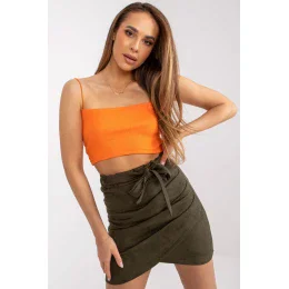 Krátka sukňa s asymetrickou prednou časťou, doplnená opaskom na zaväzovanie. Elastan 5%