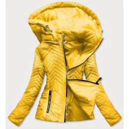 Krátka žltá prešívaná dámska bunda s kapucňou (B9566)