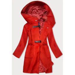 Krátky červený dámsky kabát s kapucňou (GSQ2311)