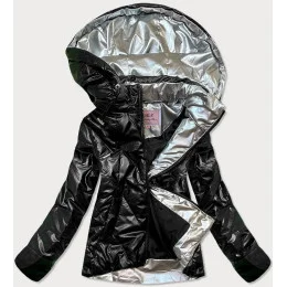 Dámska čierna lesklá bunda (W586)