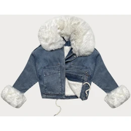 Svetlomodrá/biela dámska krátka džínsová bunda s kožušinovou podšívkou J Style (11Z8219)