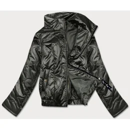 Krátka dámska bunda v khaki farbe so stojačikom (B8122-11)