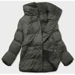 Krátka zimná bunda s vysokým golierom army (5m729-136)