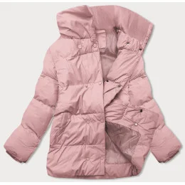 Ružová krátka zimná bunda s vysokým stojačikom (5m729-46)