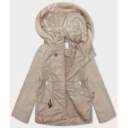 Krátka dámska bunda s melanžovými rukávmi v ťavej modrej farbe Vaston (F-23962#)