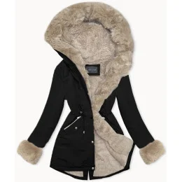 Čierno-béžová krátka zimná bunda s kožušinovou podšívkou (16M9062-392B)