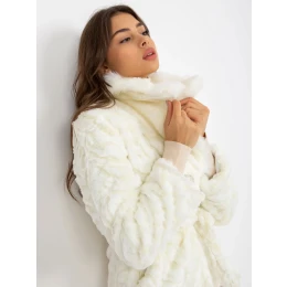 Biela zimná bunda s kožušinou a opaskom so zaväzovaním.