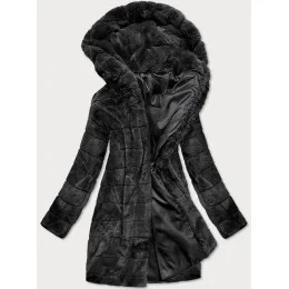 Čierna dámska bunda - kožuch s kapucňou (br9746-1)