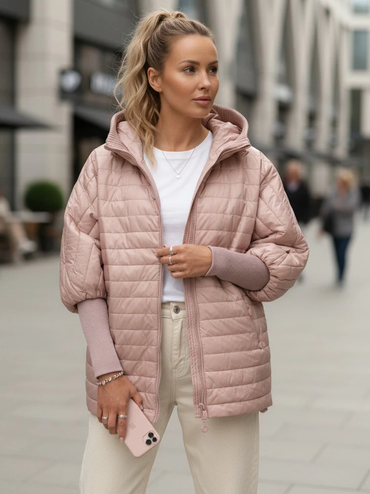 Kurtka damska o pikowanej strukturze zaprojektowana jako praktyczne okrycie przejściowe. Lekka konstrukcja z delikatnym ociepleniem zapewnia komfort w chłodniejsze dni bez efektu nadmiernej objętości. Fason łączy funkcjonalność z dopracowanymi detalami, dzięki czemu sprawdza się w codziennym użytkowaniu. Model dobrze wpisuje się w miejskie stylizacje.