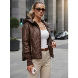 Dámska prechodná prešívaná bunda s kapucňou hnedá FashionStreet TY5613