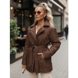 Kurtka damska przejściowa z paskiem brązowa model 22011505 - FashionStreet